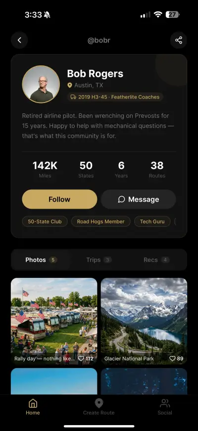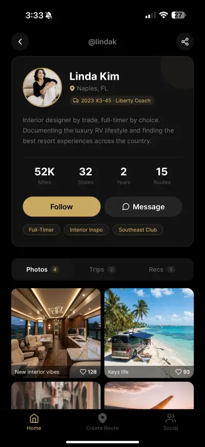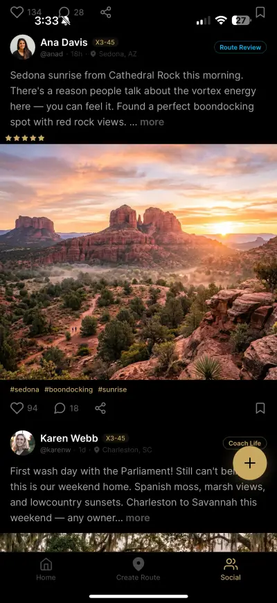 Your trip planner, saved resorts, routes, and owner community — all in your pocket.